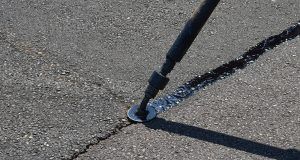 A before and after photo of a cracked road